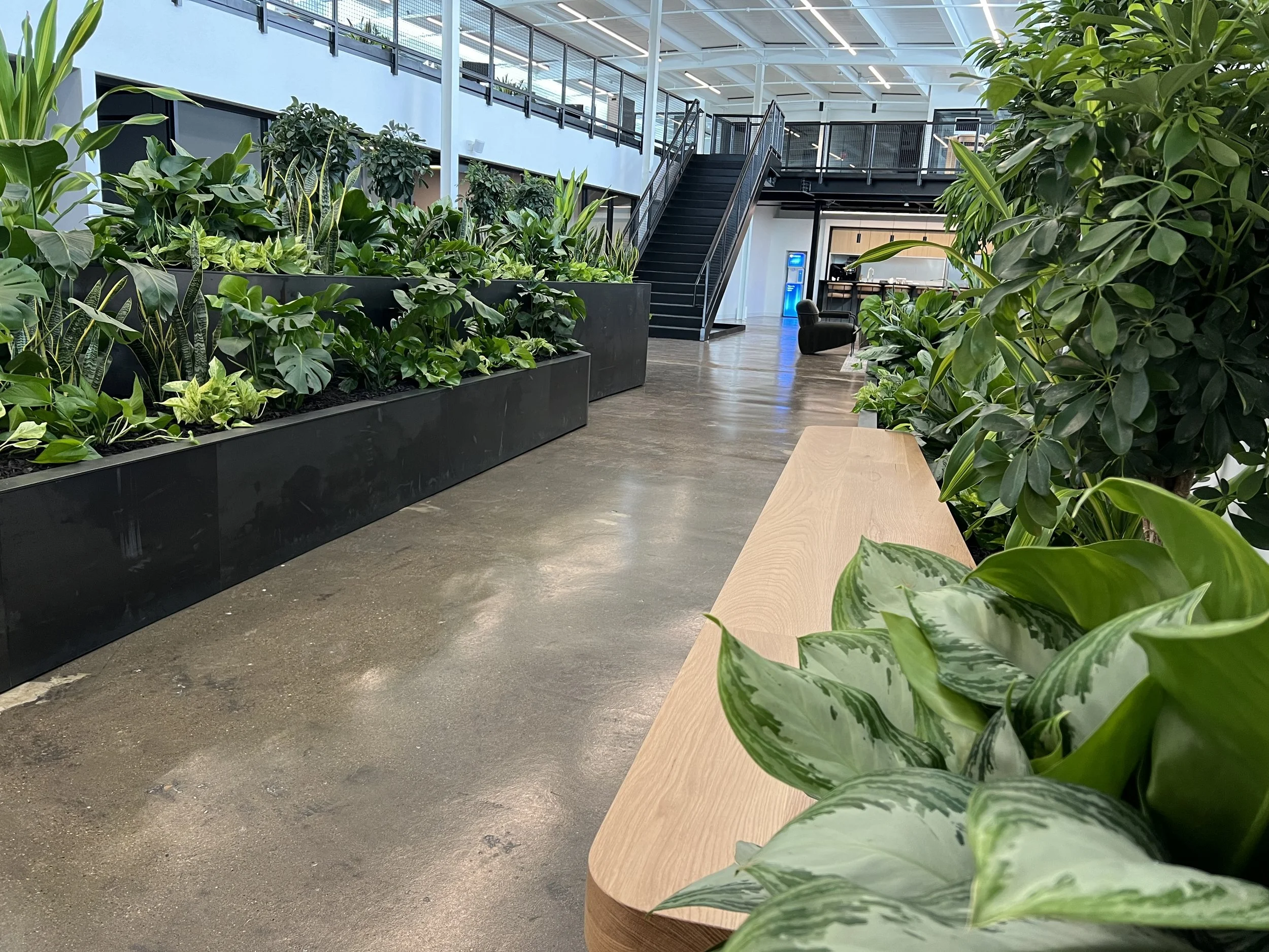 Enhance your commercial space with a custom plantscape that brings natural beauty, improves air quality, and creates a welcoming environment for employees and visitors alike.